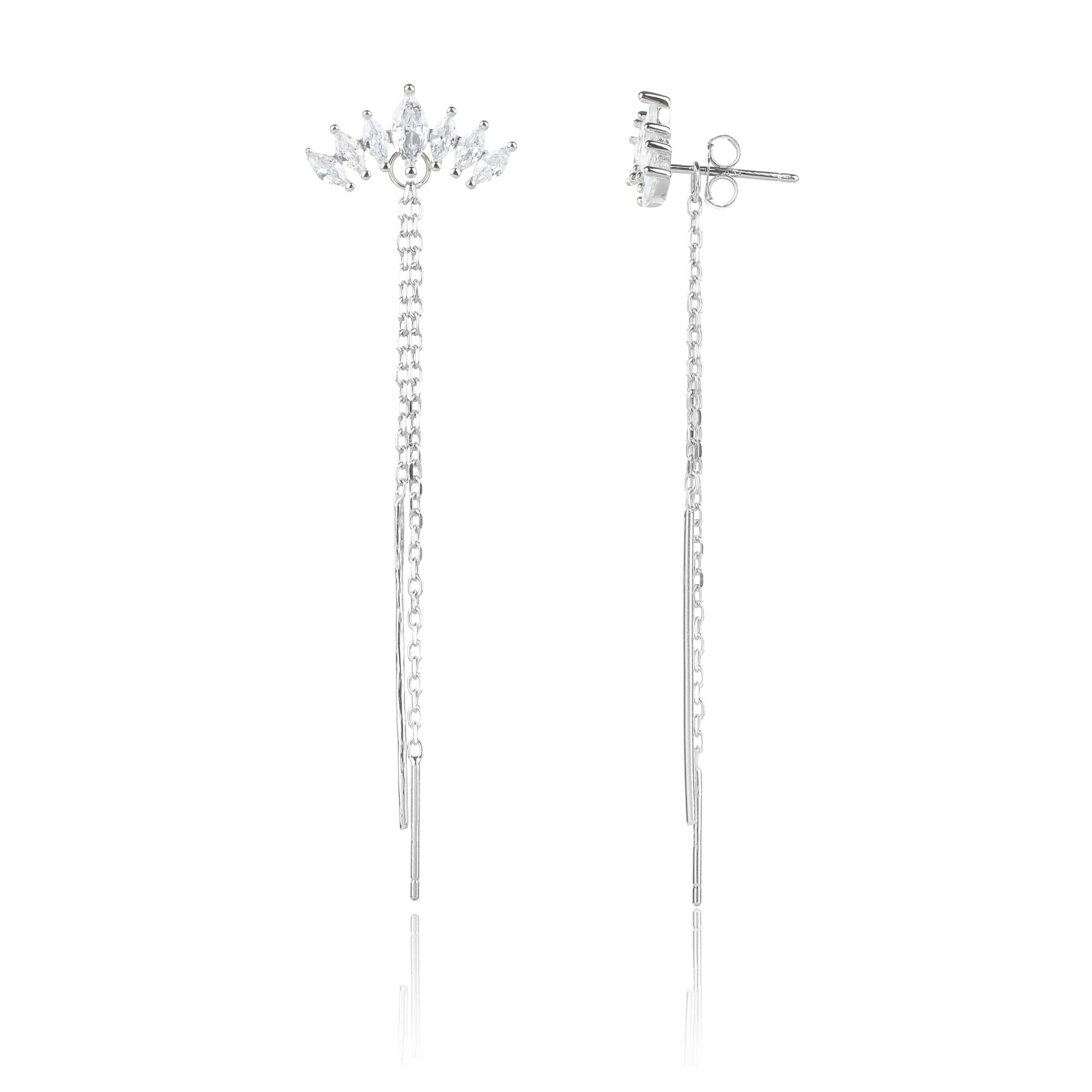 עגילי שרשרת משובץ אבני באגט כסף טהור