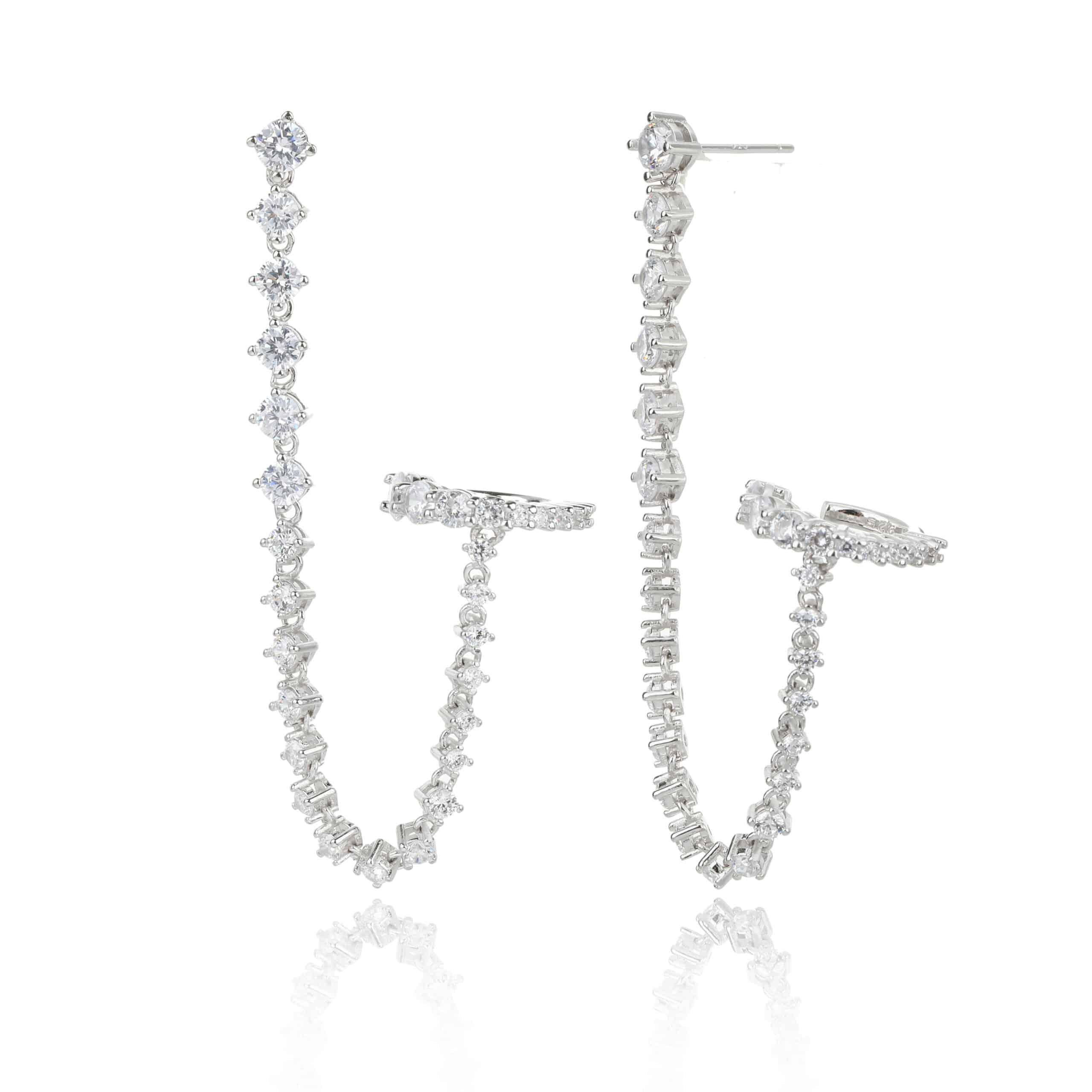 עגילי שרשרת משובץ זרקונים מלא כסף טהור