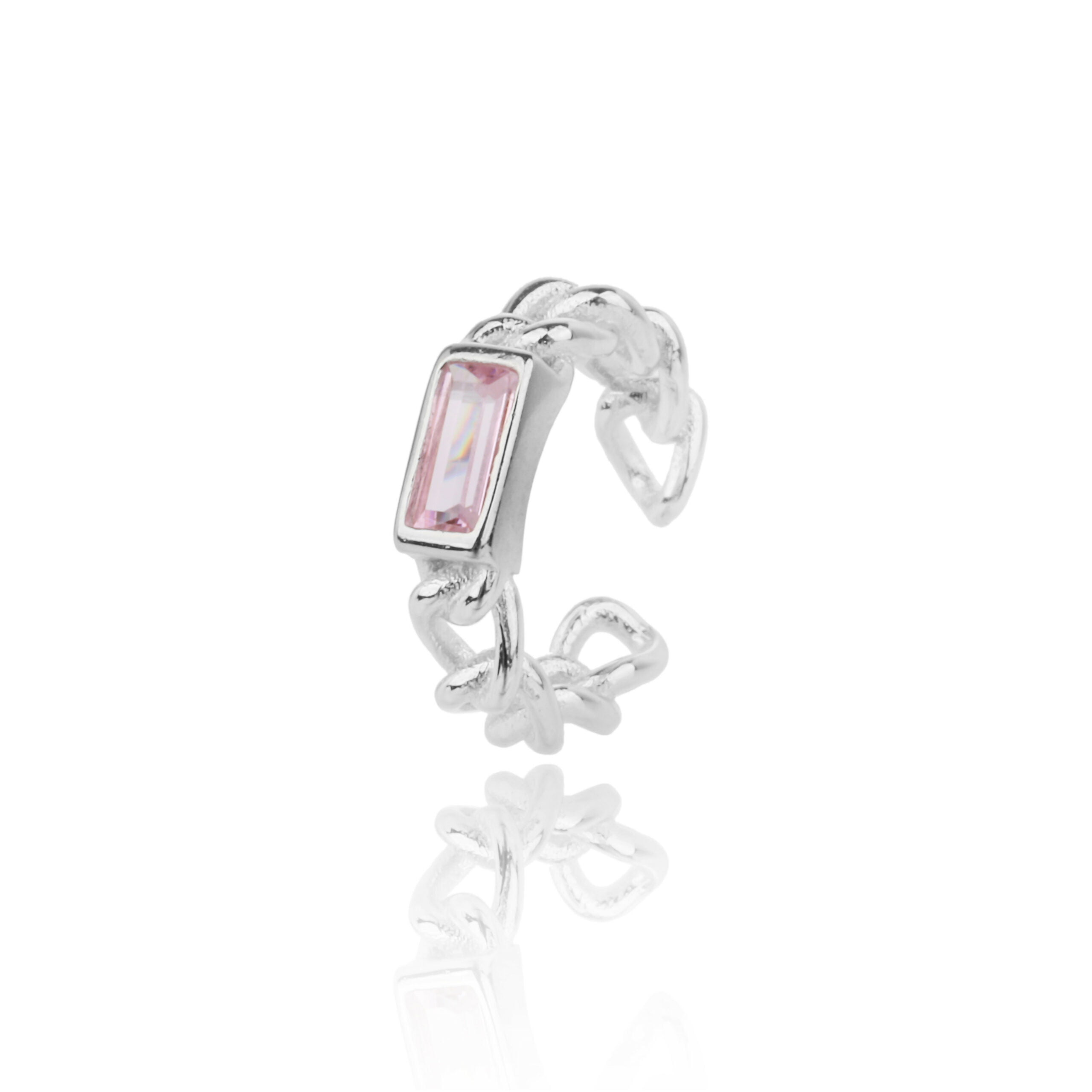 עגיל אליקס ללא חור כסף טהור אבן ורודה