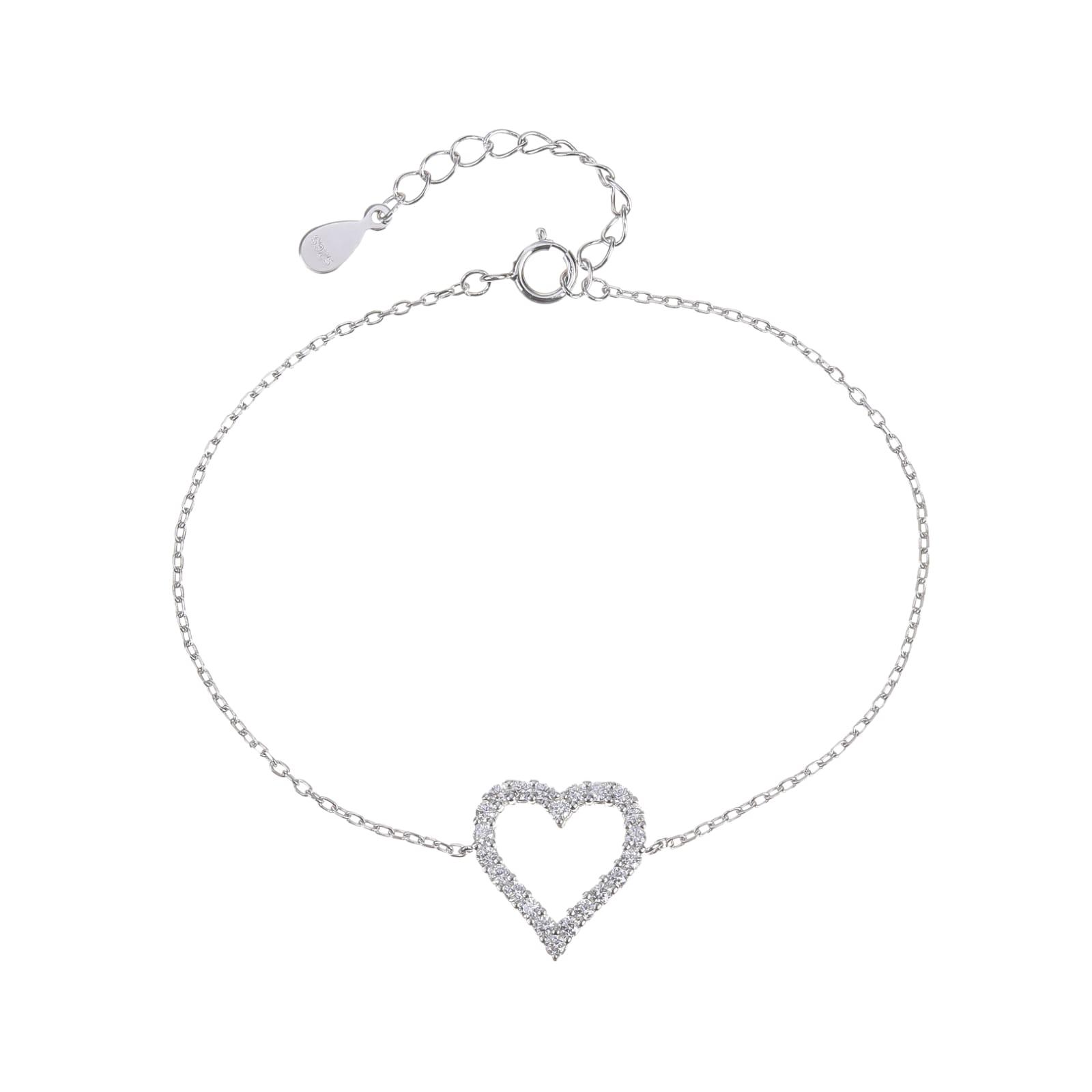 צמיד לב משובץ זרקונים כסף
