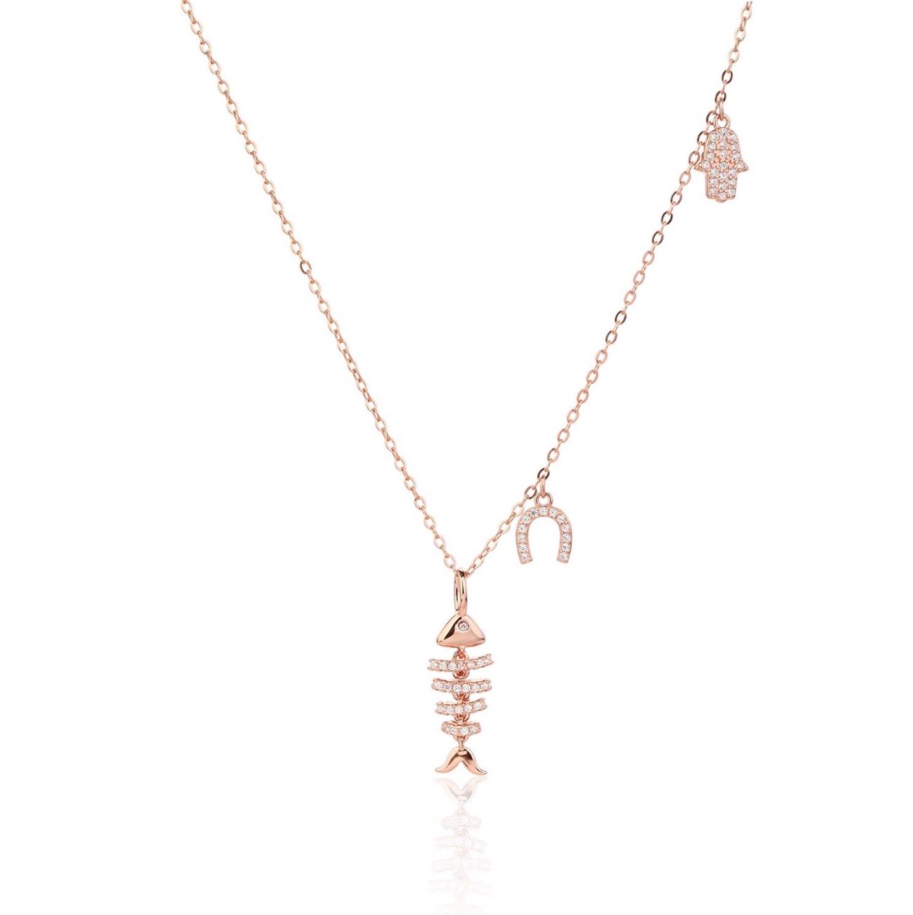 שרשרת לב משובצת זרקונים ציפוי זהב