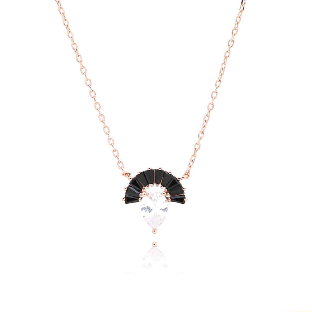 שרשרת לוטוס הפוכה טיפה שחור בשילוב רוז