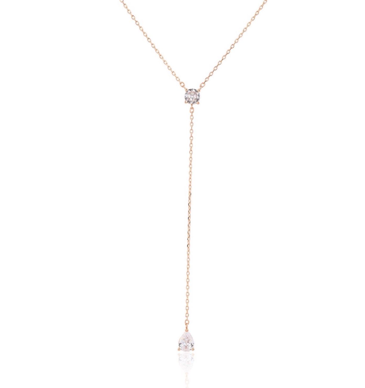 שרשרת עניבה זרקון טיפה רוז גולד